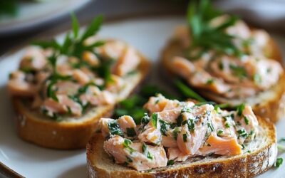 Składniki (na około 12 tostów):150 g świeżego łososia,100 g wędzonego łososia,100 g serka śmietankowego (np. Philadelphia, St Môret lub ricotta),1…