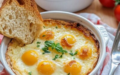 Składniki: – 4 jajka – 4 łyżki śmietany kremówki – 50 g startego sera (Gruyère lub Comté) – 4 plasterki…