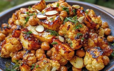 Składniki: Pieczony kalafior w sosie curry z miodem, grillowany halloumi i chrupiąca ciecierzyca: Do kalafiora: 1 średni kalafior, pokrojony na…