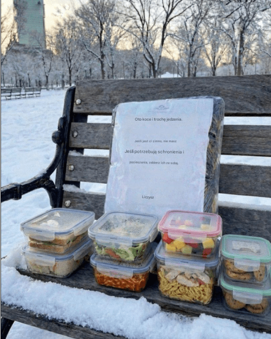 Pewnego ranka, po sprzedaniu starej skrzynki z narzędziami do lombardu za 25 dolarów, Ethan zatrzymał się w sklepie dyskontowym. Kupił trzy tanie koce z polaru, zupę w puszce, bochenek chleba i paczkę ogrzewaczy do rąk. Starannie spakował wszystko do plastikowych toreb i położył na ławce, na której zazwyczaj siadał staruszek. Dodał odręczną notatkę: „Te koce się nie marnują. Jeśli jest ci zimno, brakuje ci schronienia lub potrzebujesz pocieszenia, proszę, weź jeden. Jesteś ważny”.