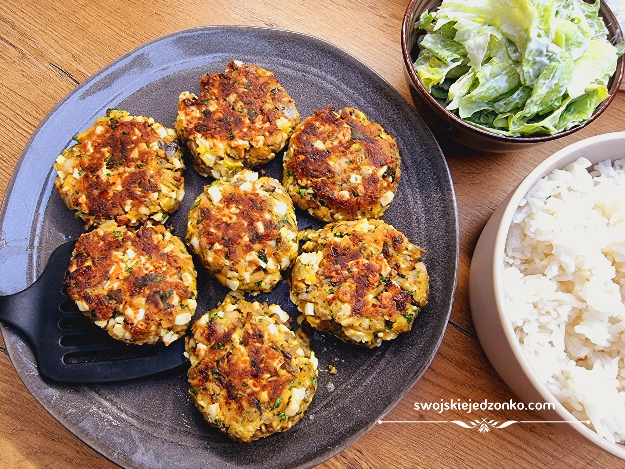 Smażymy na patelni na odrobinie oleju. Podawać możemy dowolnie z ryżem lub ziemniakami i surówką.