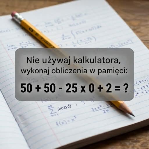 Na pierwszy rzut oka to obliczenie wydaje się bardzo proste. Możesz myśleć, że rozwiążesz je w kilka sekund, nawet bez przygotowania zadania. A jednak wiele osób udziela błędnej odpowiedzi. Nie dlatego, że nie umieją liczyć, wręcz przeciwnie. W rzeczywistości błąd prawie zawsze wynika z reguły matematycznej, o której wielu z czasem zapomina. I zobaczysz, że twój mózg prawdopodobnie płata ci figla.