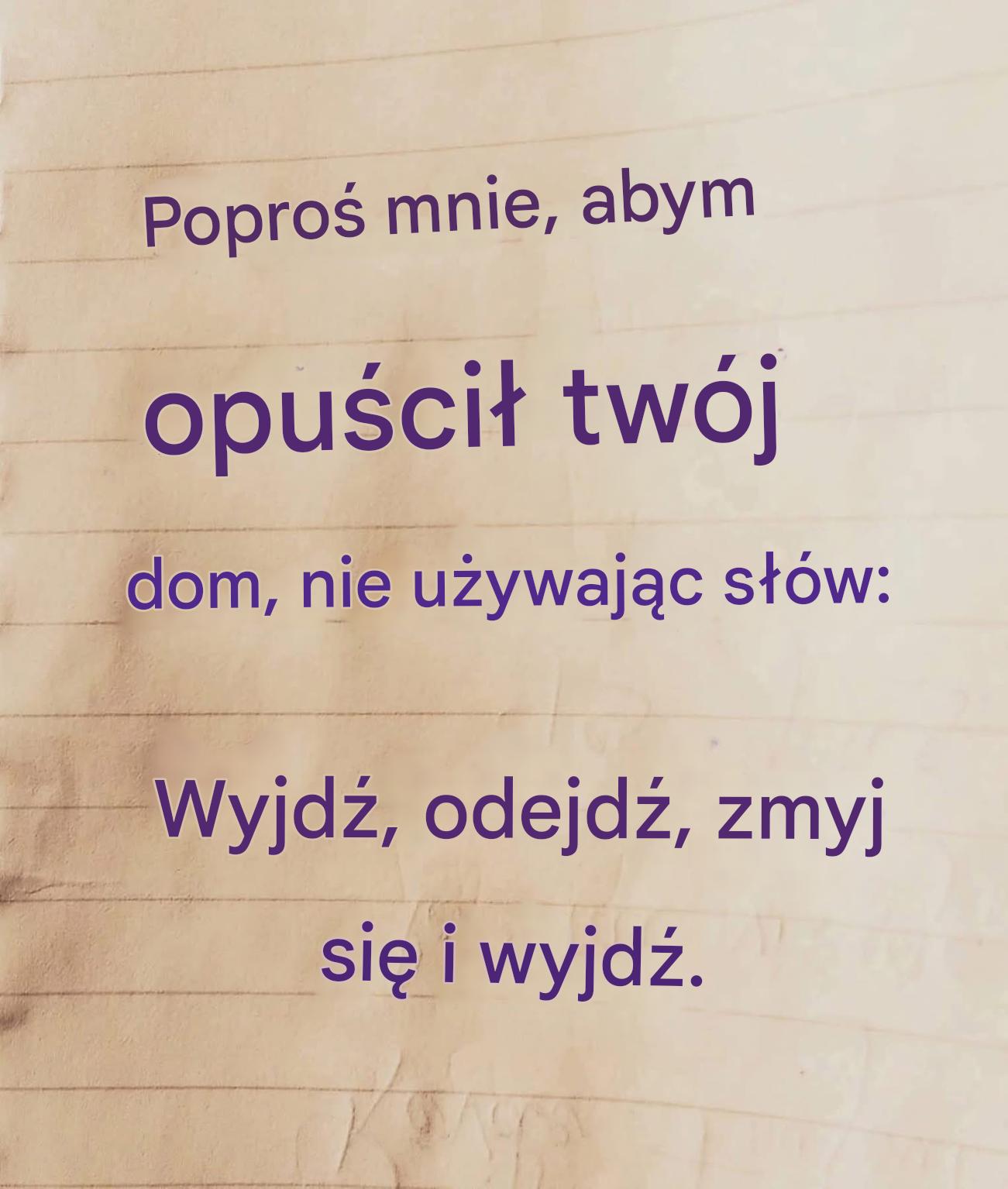 Proszenie kogoś o opuszczenie domu bez użycia słów: